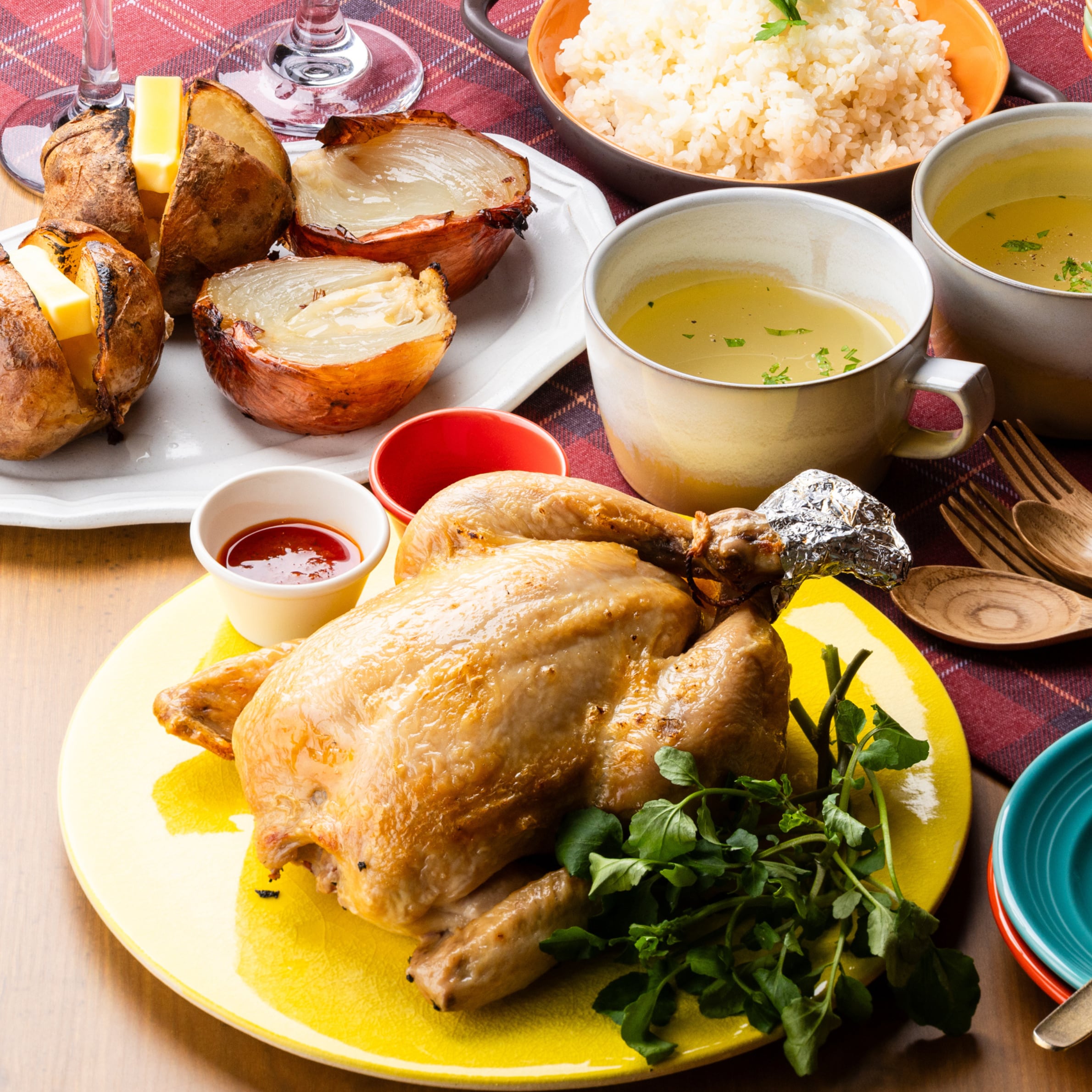 ロティサリーチキン・オニオンロースト・丸ごとベイクドポテト・